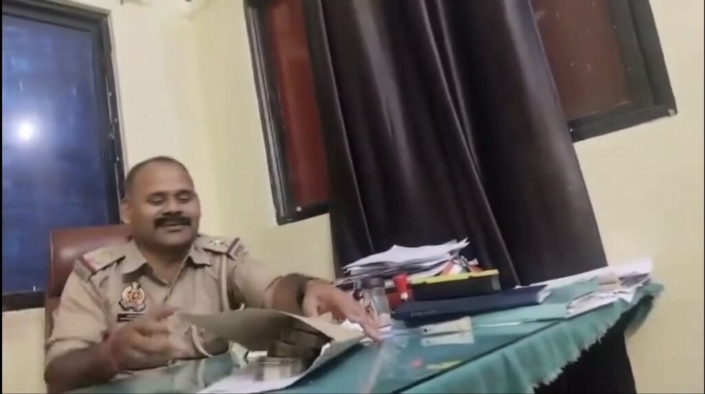वीडियो में दरोगा धनंजय सिंह फ़ाइल में नोट रखते नजर आए। चेहरे पर ऐसी खुशी जैसे प्रमोशन मिल गया हो।