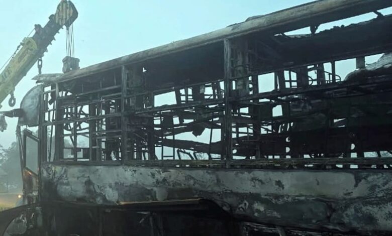 मथुरा में घने कोहरे के कारण यमुना एक्सप्रेसवे पर बड़ा हादसा हो गया। यहां 7 बसें और 2 कारें आपस में टकरा गईं, जिसके बाद 5 बसों और 2 कारों में आग लग गई।